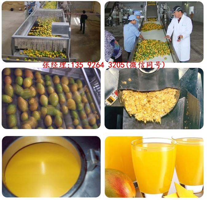 清洗(清洗機)—檢果(檢果機)—破碎(破碎機)—打漿(打漿機)—榨汁(榨汁機)—過濾(過濾器)—濃縮(濃縮器)—調配(調配罐)—滅菌(滅菌機)—無菌儲存(無菌貯罐)—無菌灌裝—成品包裝