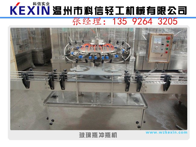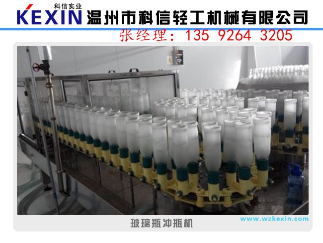 溫州科信全自動洗瓶機采用循環熱水沖洗、溫水預熱、凈水洗凈等多段處理,具有節水、節熱能等優點;