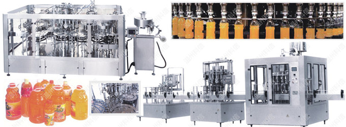 清洗(清洗機)—檢果(檢果機)—破碎(破碎機)—打漿(打漿機)—榨汁(榨汁機)—過濾(過濾器)—濃縮(濃縮器)—調配(調配罐)—滅菌(滅菌機)—無菌儲存(無菌貯罐)—無菌灌裝—成品包裝
