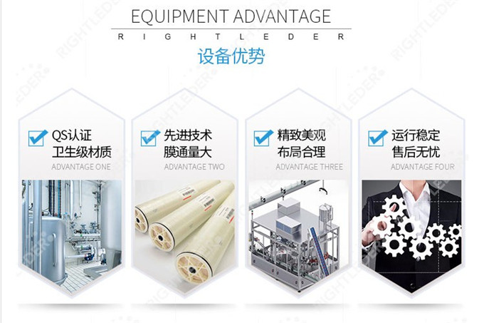 1.礦泉水生產線采用的是進口的反滲透膜,不僅僅脫鹽率高而且使用壽命長,運行成本低廉;