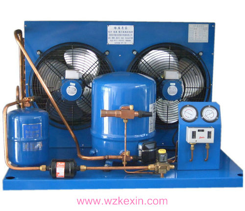 C,冷凝器:冷凝器有空氣冷卻、水冷卻和空氣與水結(jié)合的冷卻方式。空氣冷卻只限于在小型冷庫(kù)設(shè)備中應(yīng)用,水冷卻的冷凝器則可用于所有形式的制冷系統(tǒng)。