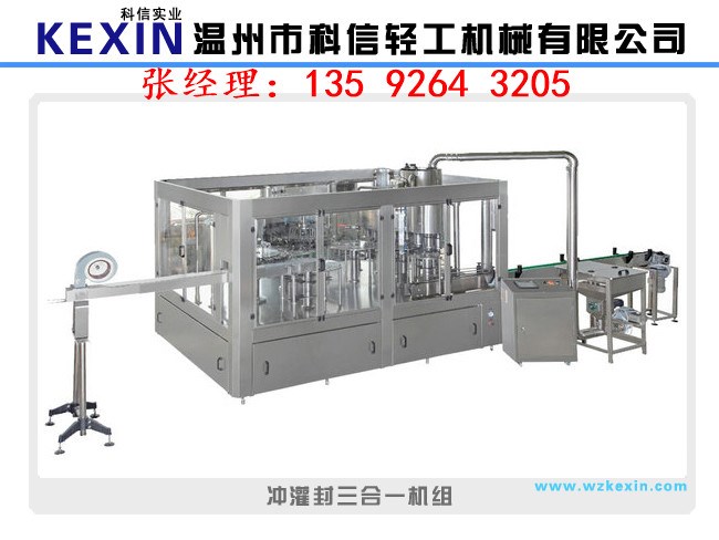 科信酵素三合一灌裝機(jī)將沖洗、灌裝、封蓋三功能組合在一個(gè)機(jī)體上,全過程實(shí)現(xiàn)自動(dòng)化,適用于耐高溫聚脂瓶灌裝果汁飲料、果茶飲料,也適用于礦泉水、純凈水等不含氣飲料,本機(jī)選用優(yōu)質(zhì)的SUS304材料制作,主關(guān)件部件采用數(shù)控機(jī)床精密加工,整機(jī)采用先進(jìn)光電檢測(cè)各部件的運(yùn)行狀況,具有無瓶不灌裝,無瓶不送蓋,自動(dòng)化程度高,簡(jiǎn)易的人機(jī)界面的操作顯示屏.
