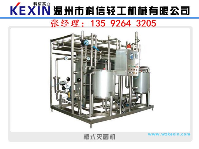 6.溫州科信巴氏滅菌機配有兩個罐,一個罐滅菌,一個罐冷卻,可實行連續(xù)生產(chǎn)